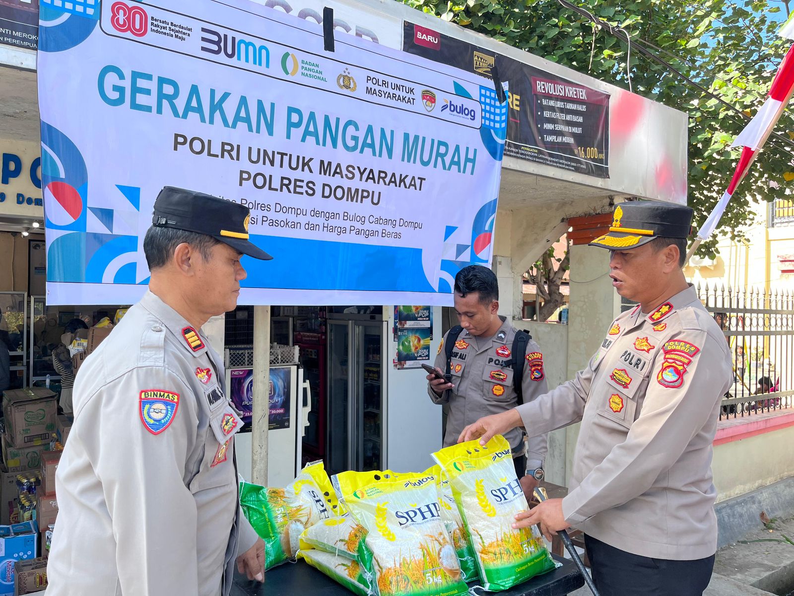 Kepolisian Resor (Polres) Dompu menggelar kegiatan Gerakan Pangan Murah (GPM) sebagai bagian dari upaya mendukung program nasional Stabilisasi Pasokan dan Harga Pangan (SPHP). Kegiatan yang dilaksanakan pada Kamis pagi sekitar pukul 09.00 WITA ini berlangsung di dua titik strategis, yakni di depan Primkopol Polres Dompu dan depan Mako Polsek Woja.
