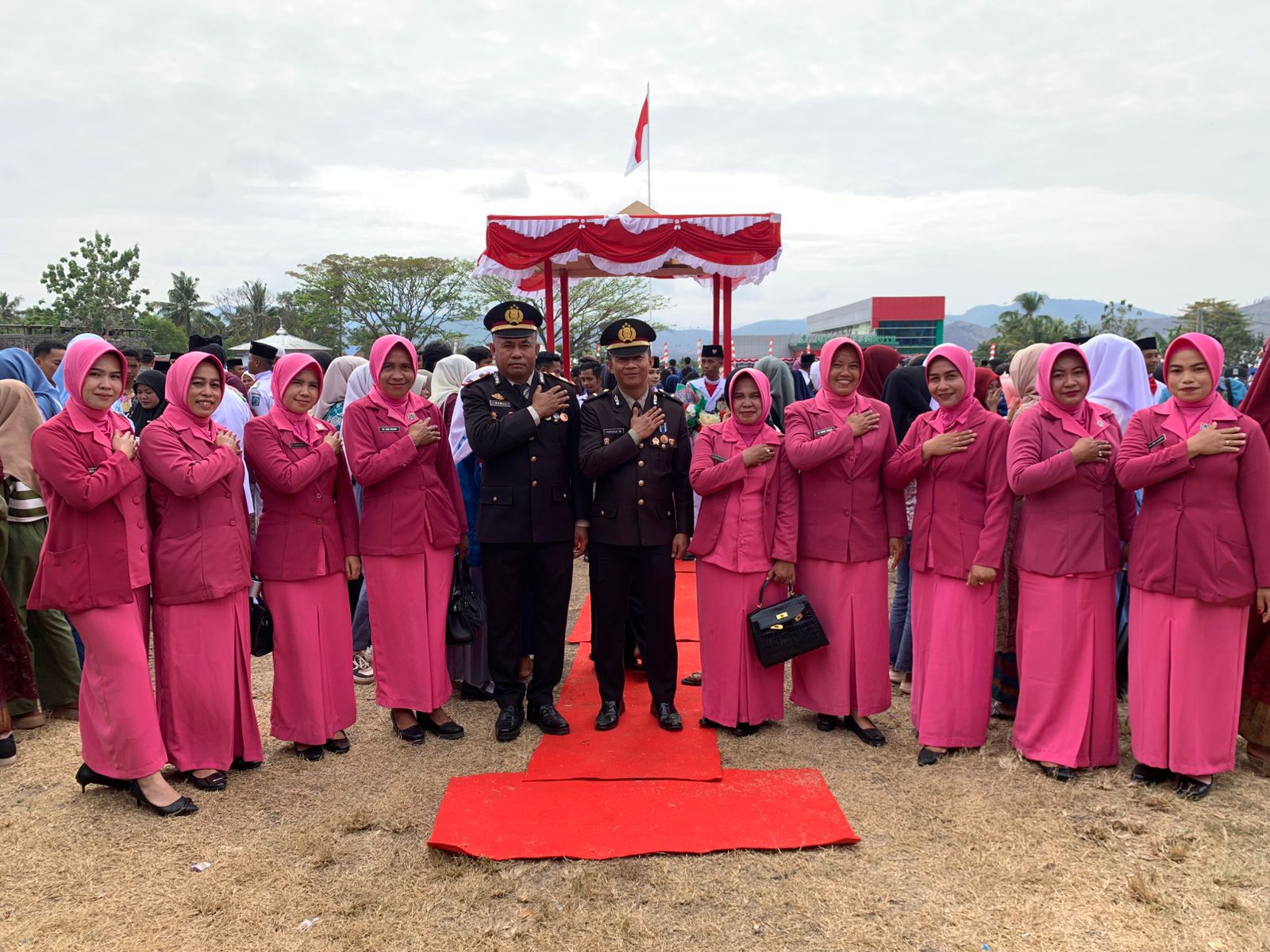 Barisan peserta upacara terlihat rapi, berdiri tegak di bawah terik matahari pagi. Hadir dalam momentum bersejarah itu, tokoh-tokoh penting yang menjadi representasi kebanggaan masyarakat Manggelewa.