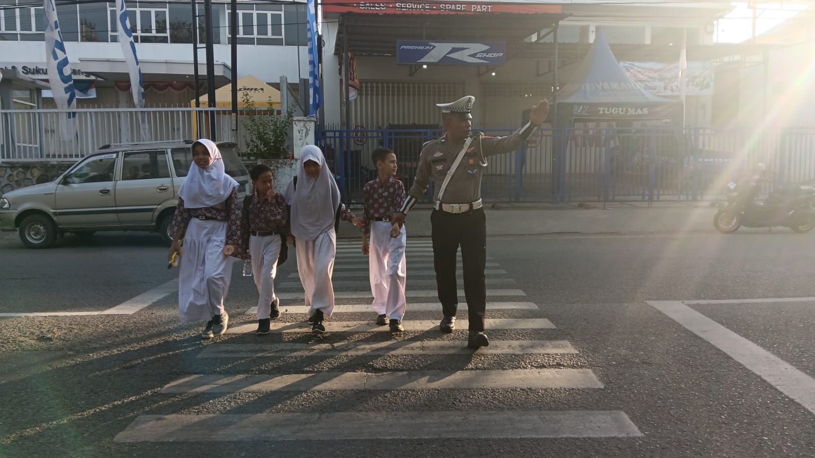 Kota Bima, NTB (29 Agustus 2025) – Satuan Lalu Lintas (Sat Lantas) Polres Bima Kota terus menunjukkan kepeduliannya terhadap keselamatan pengguna jalan. Pada Jumat pagi (29/8/2025) pukul 07.00 Wita, personel Sat Lantas melaksanakan kegiatan Rawan Pagi dengan membantu menyeberangkan pejalan kaki, anak-anak sekolah, serta pengguna jalan lainnya di sejumlah titik rawan.