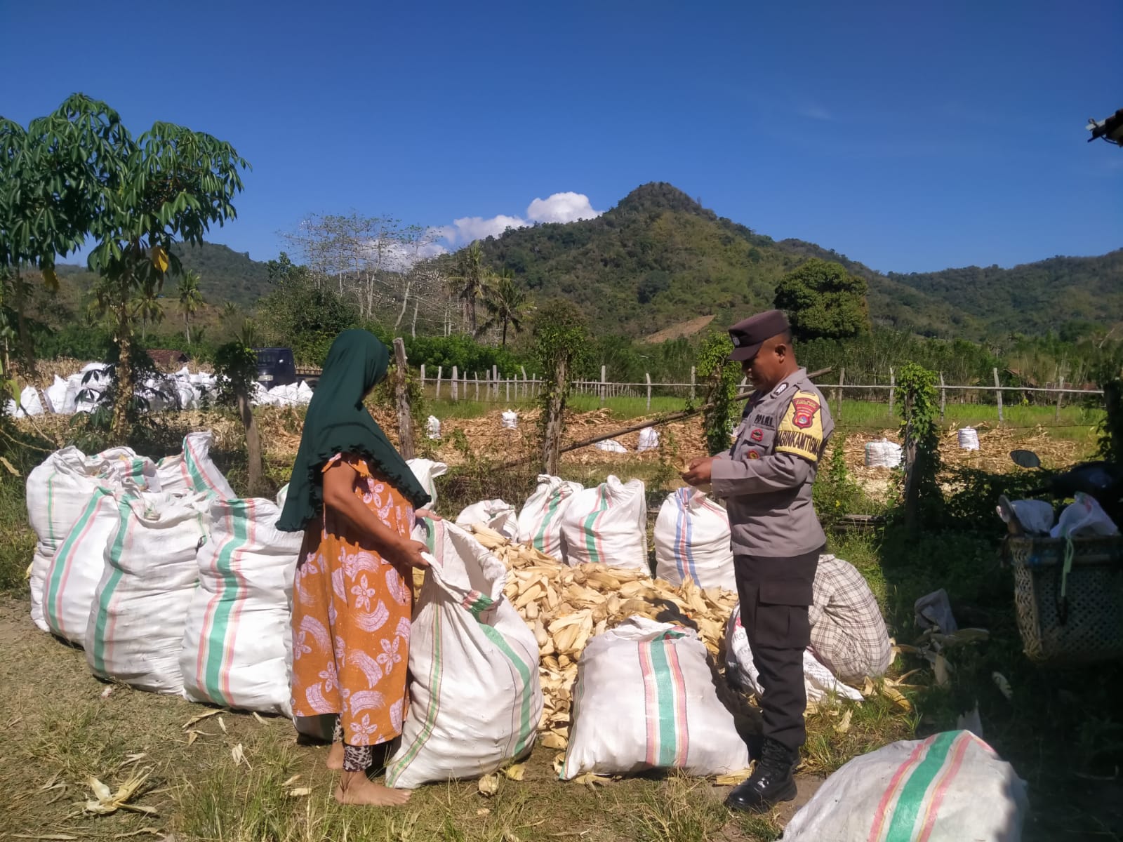Sumbawa Barat, NTB – Polsek Seteluk terus menunjukkan komitmennya mendukung program ketahanan pangan nasional. Senin (01/09/2025), Bhabinkamtibmas Desa Seteluk Tengah turun langsung mendampingi warga binaan saat melakukan panen jagung di lahan pertanian Blok Tobang, Desa Seteluk Tengah, Kecamatan Seteluk.