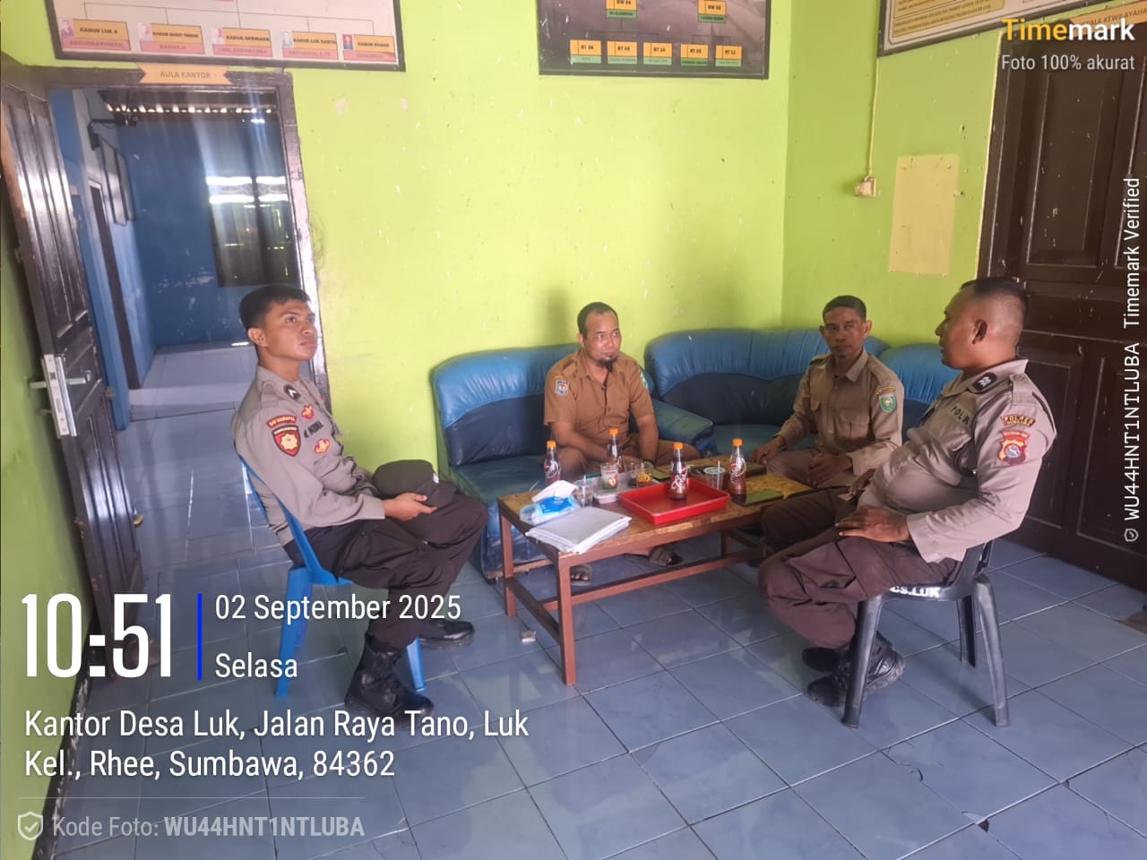 Sumbawa Besar, NTB — Anggota Polsek Rhee melaksanakan patroli cipta kondisi (cipkon) untuk memastikan keamanan dan ketertiban masyarakat di wilayah hukumnya. Kegiatan ini dilakukan pada hari Selasa, 2 September 2025, mulai pukul 10.00 Wita hingga selesai, dengan menyasar Desa Rhee Loka dan Desa Luk.