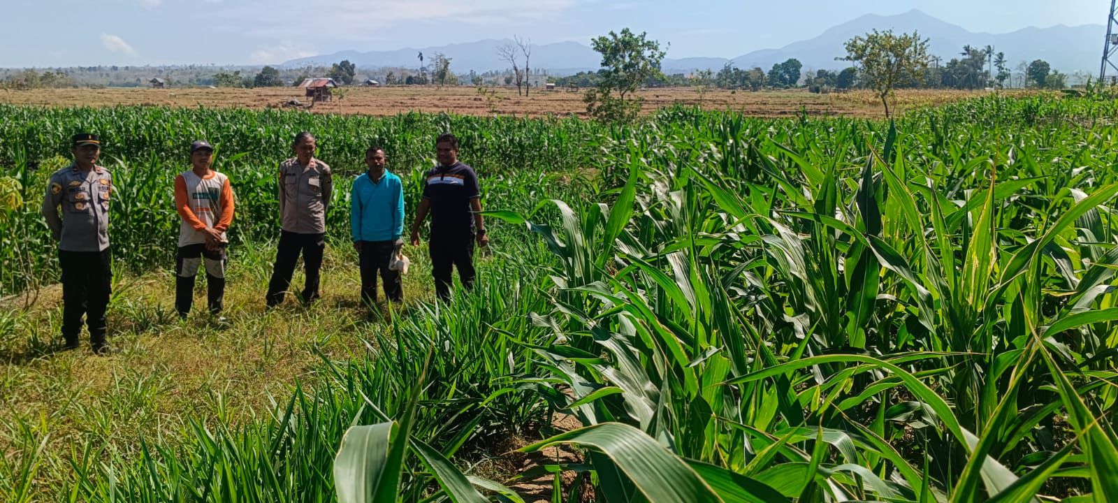 Kapolsek Dompu IPDA Ade Helmi, SH bersama jajarannya melaksanakan pengecekan langsung terhadap tanaman jagung yang merupakan bagian dari Program Ketahanan Pangan di wilayah Dusun O’o Timur, Desa O’o, Kecamatan Dompu, Rabu (3/9/2025) sekitar pukul 10.00 WITA.