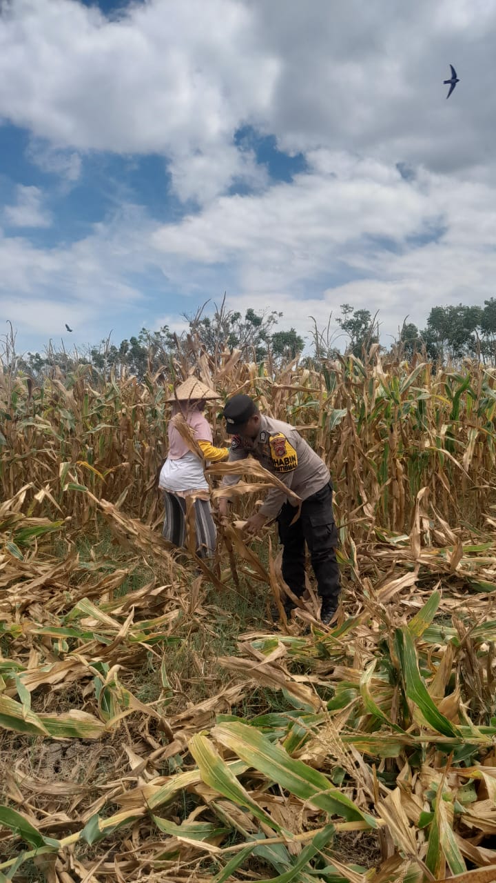 Selain memberikan motivasi dan semangat kepada petani, BRIPKA Adi juga berdialog langsung dengan pemilik lahan serta warga sekitar guna mendengar aspirasi dan kendala yang dihadapi para petani jagung di lapangan.