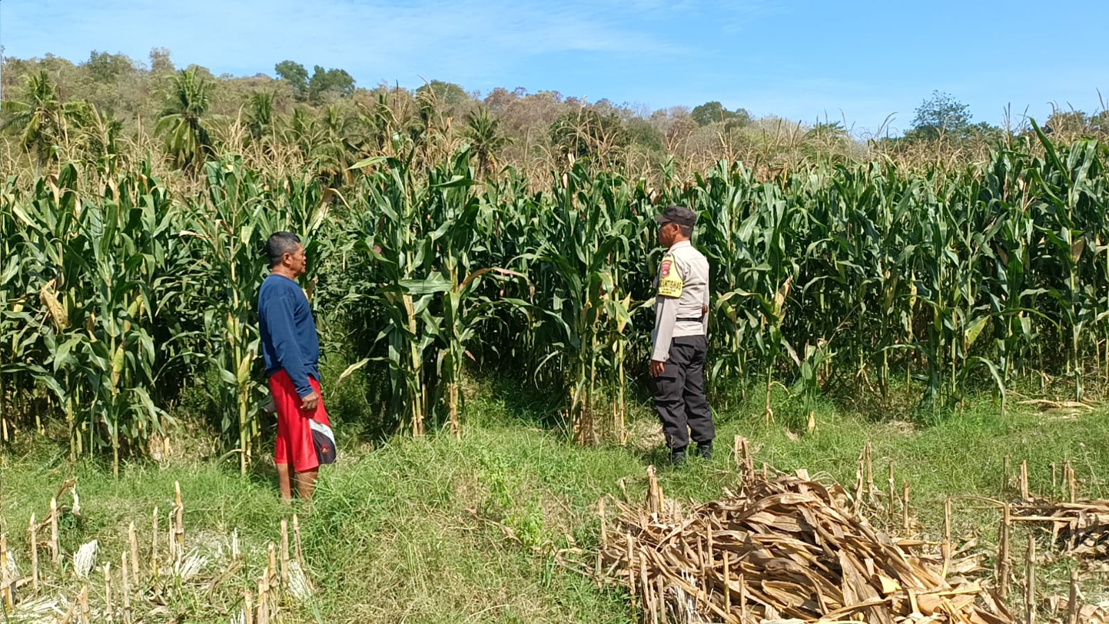 Dalam kegiatan ini, Bripka Heriyanto memantau langsung kondisi tanaman jagung milik petani yang diperkirakan akan segera memasuki masa panen. Berdasarkan pantauan di lokasi, kondisi tanaman jagung terlihat subur dan siap panen, menunjukkan prospek hasil yang memuaskan.