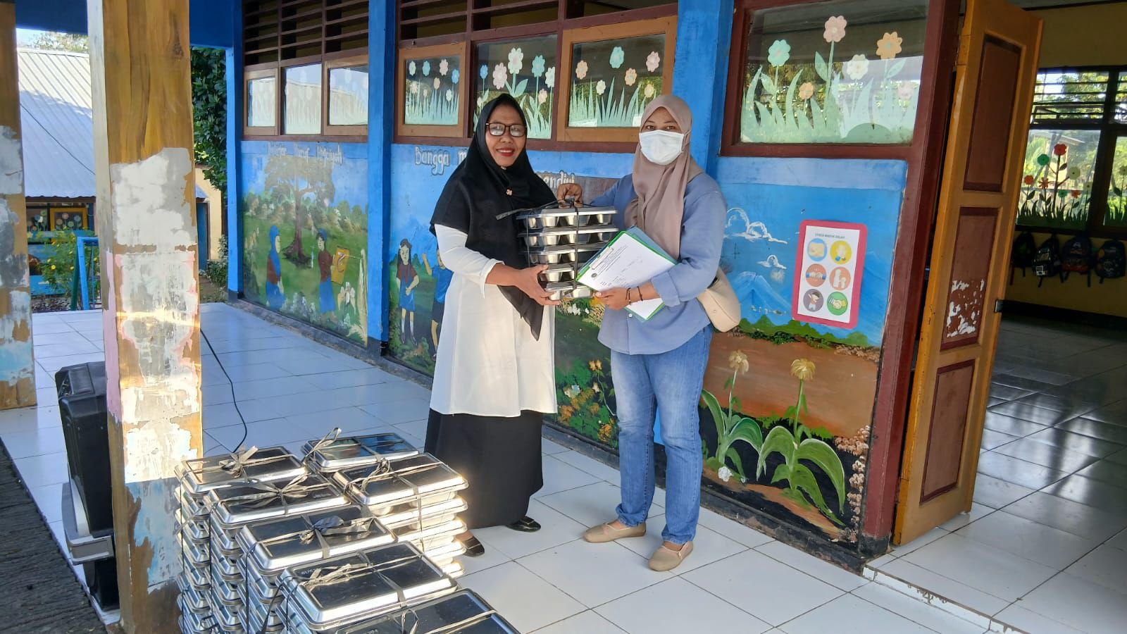 Pendistribusian makanan dilakukan menggunakan dua unit mobil Carry Box. Proses pengiriman dibagi menjadi dua tahap, yaitu Tahap pertama, dimulai pukul 07.30 WITA, ditujukan untuk siswa-siswi SD kelas 1 hingga 3. Tahap kedua, dimulai pukul 09.30 WITA, ditujukan untuk siswa-siswi SD kelas 5 dan 6, serta siswa SMP dan MTs kelas 7 hingga 9.