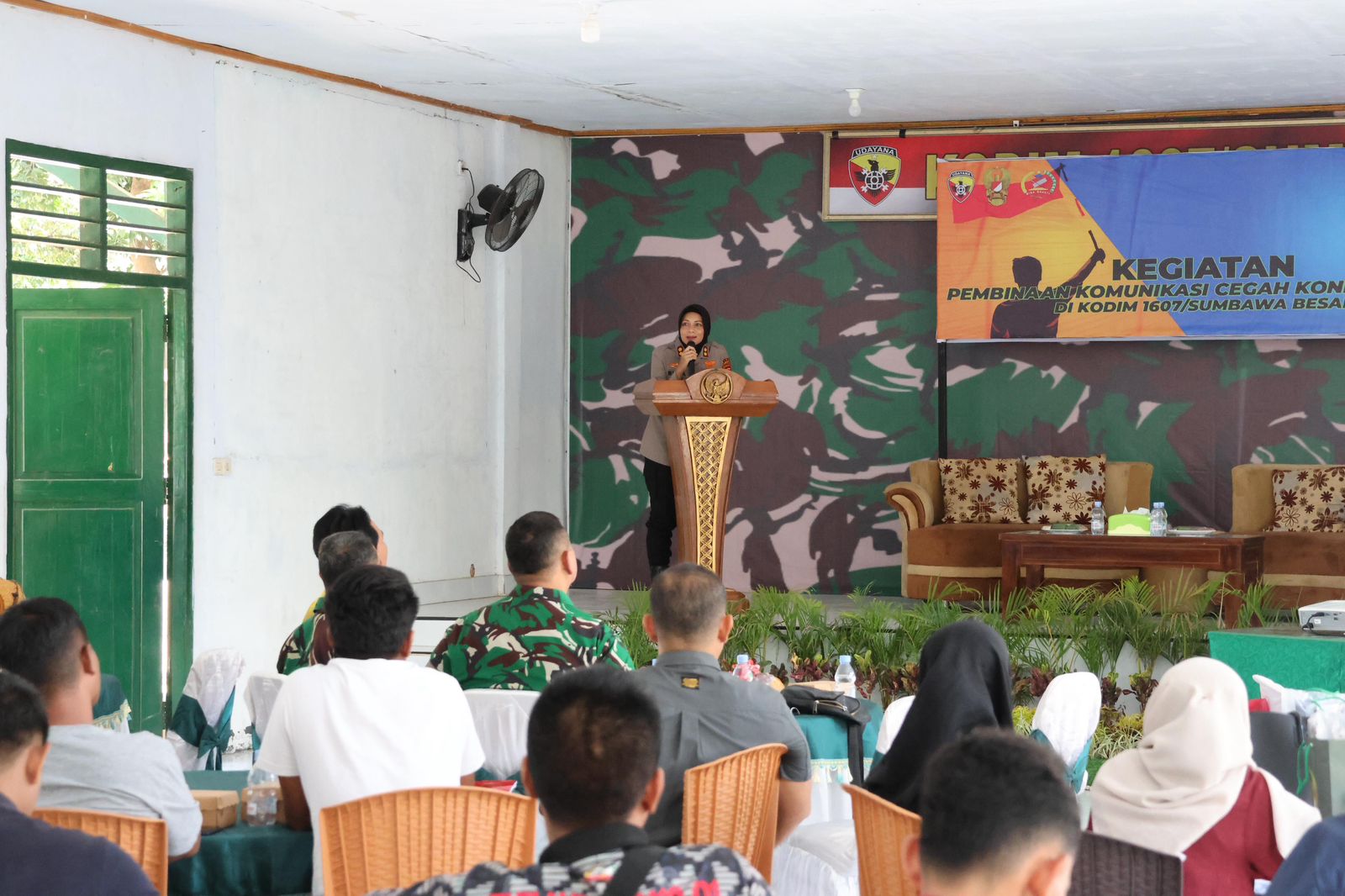 Dalam sambutannya, Kasdim 1607/Sumbawa Mayor Inf. M. Dahlan, S.Sos. menekankan pentingnya komunikasi sebagai pondasi utama untuk menciptakan kondisi sosial yang kondusif. Ia juga menyoroti potensi gesekan akibat perbedaan pendapat dan penyebaran hoaks di media sosial yang bisa memicu konflik sosial.