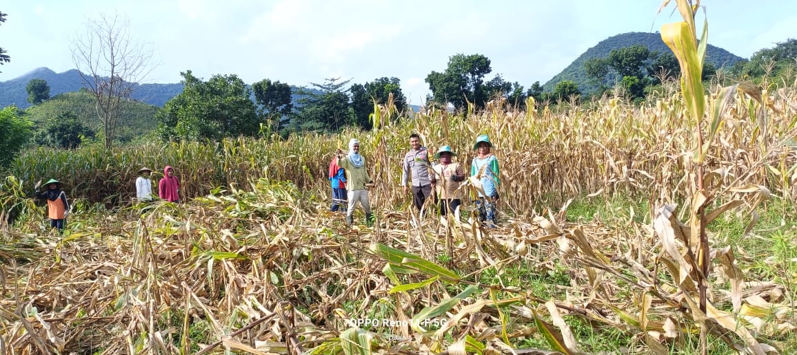 Dalam rangka mendukung Program Ketahanan Pangan Nasional menuju Indonesia Emas 2025, Bhabinkamtibmas Desa Adu, Polsek Hu’u Brigadir Wahyudin melaksanakan kegiatan sambang sekaligus membantu warga binaannya dalam proses panen jagung.