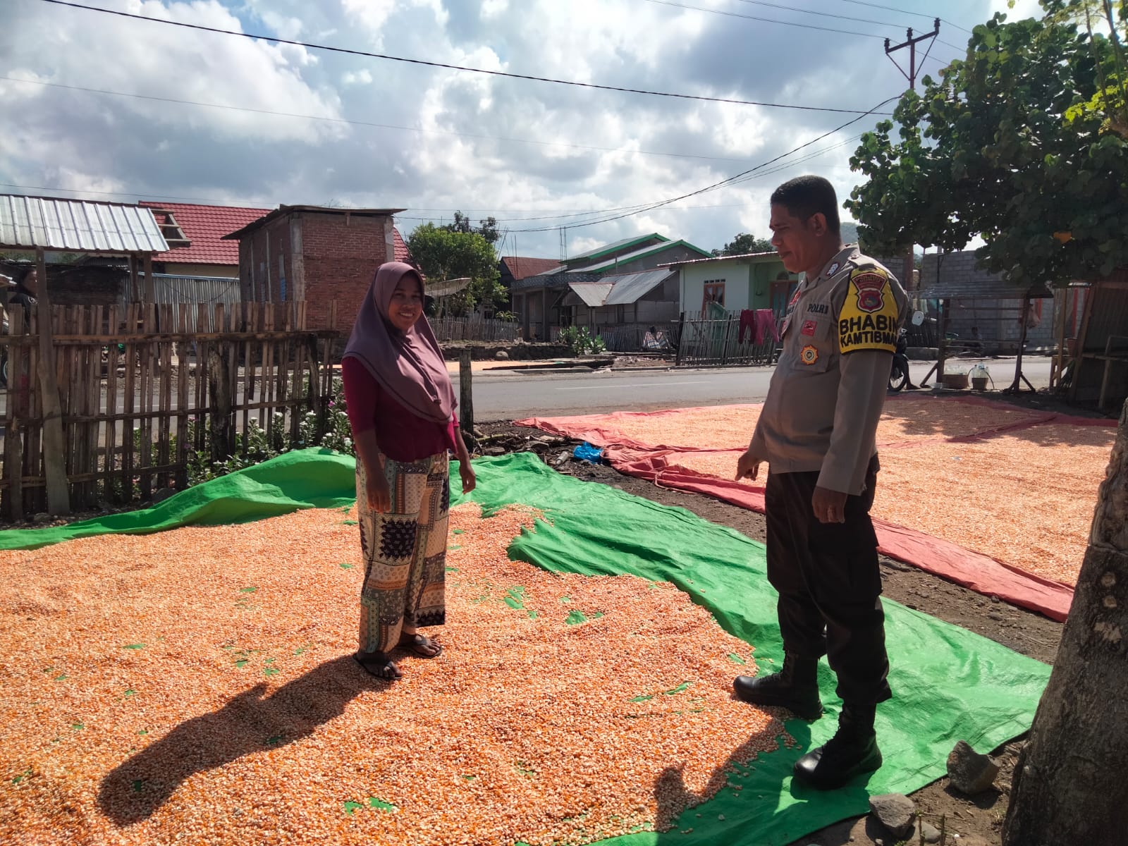 Dalam kegiatan tersebut, Bripka Ismail meninjau aktivitas salah satu warga, Sdr. Manysir, yang sedang menjemur jagung hasil panen. Ia juga menyampaikan pesan kepada para petani agar tetap bersemangat dalam bekerja serta terus memotivasi masyarakat lainnya untuk tekun mencari nafkah demi meningkatkan taraf hidup.