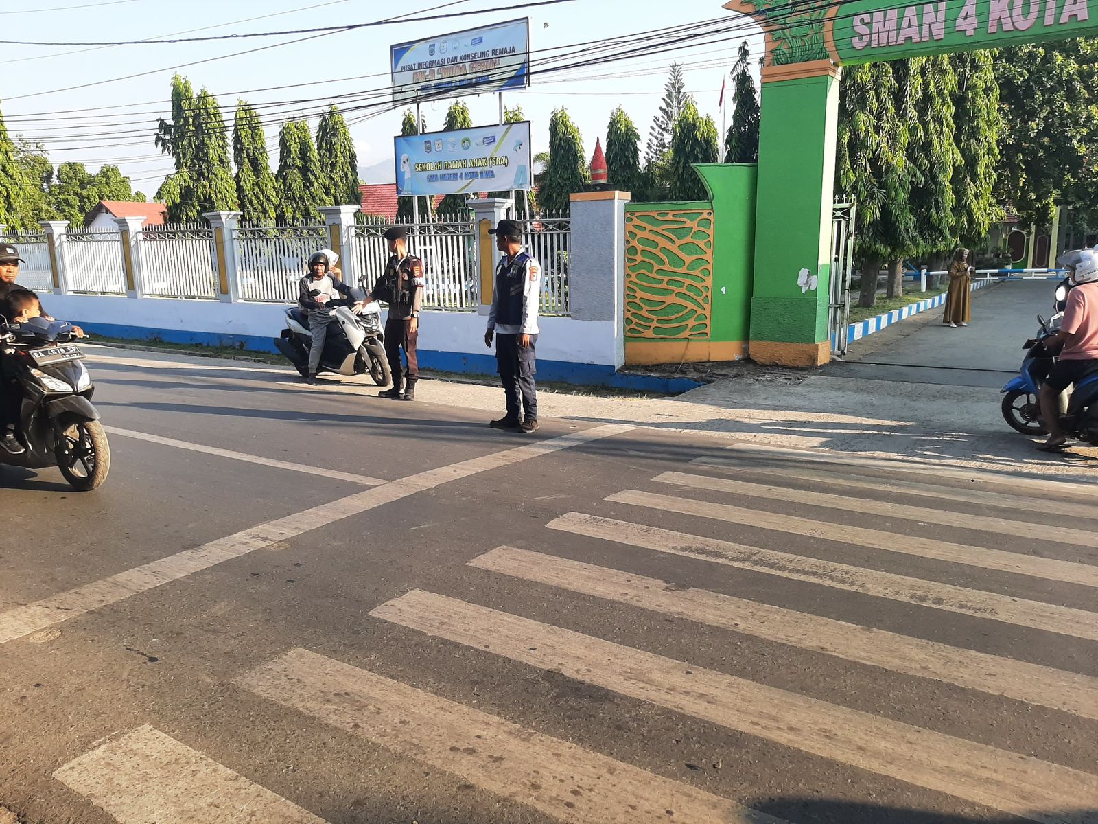 Selain mengurai kemacetan, personel Sat Samapta juga memberikan pelayanan kepada anak sekolah yang menyeberang jalan. Hal ini dilakukan untuk mengurangi angka kecelakaan lalu lintas serta memberikan rasa aman kepada para pelajar.