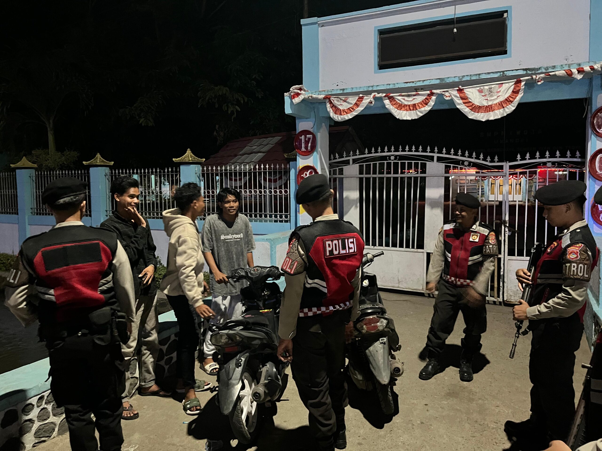 * Menyambangi kelompok remaja yang duduk di pinggir jalan, memberikan imbauan agar berhati-hati dalam beraktivitas malam hari dan menghindari pergaulan bebas serta potensi tindakan kriminal.