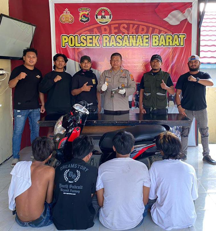 “Beruntung, saat kejadian, Tim Opsnal Polsek Rasanae Barat yang berada di sekitar TKP langsung bergerak cepat dan berhasil membekuk para pelaku beserta barang bukti sebelum aksi mereka memakan korban,” jelas AKP Suratno.