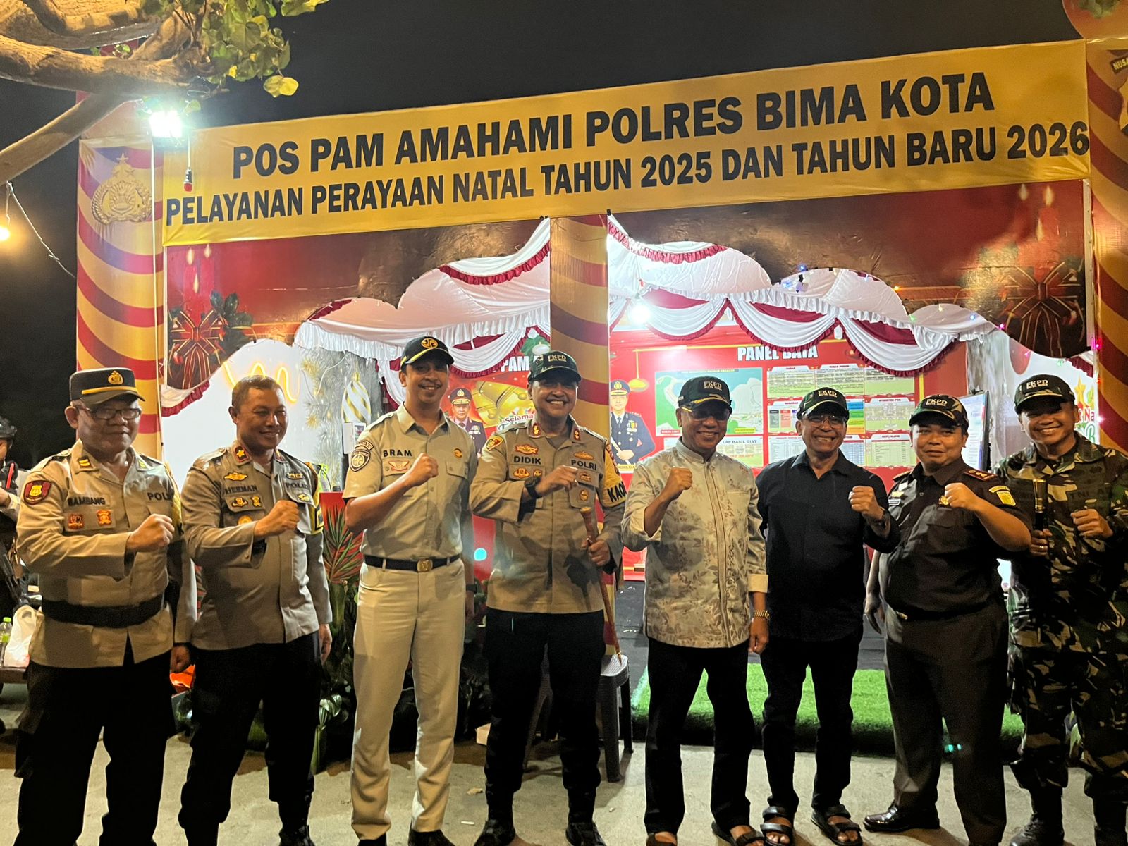 Kota Bima, NTB (01 Januari 2026) – Kapolres Bima Kota AKBP Didik Putra Kuncoro, S.I.K., M.Si., bersama Forum Komunikasi Pimpinan Daerah (Forkopimda) Kota Bima melaksanakan pengecekan Pos Pengamanan (Pospam) dan Pos Pelayanan (Posyan) Operasi Lilin 2025 sekaligus memantau situasi keamanan dan ketertiban masyarakat (sitkamtibmas) pada malam pergantian Tahun Baru 2026.