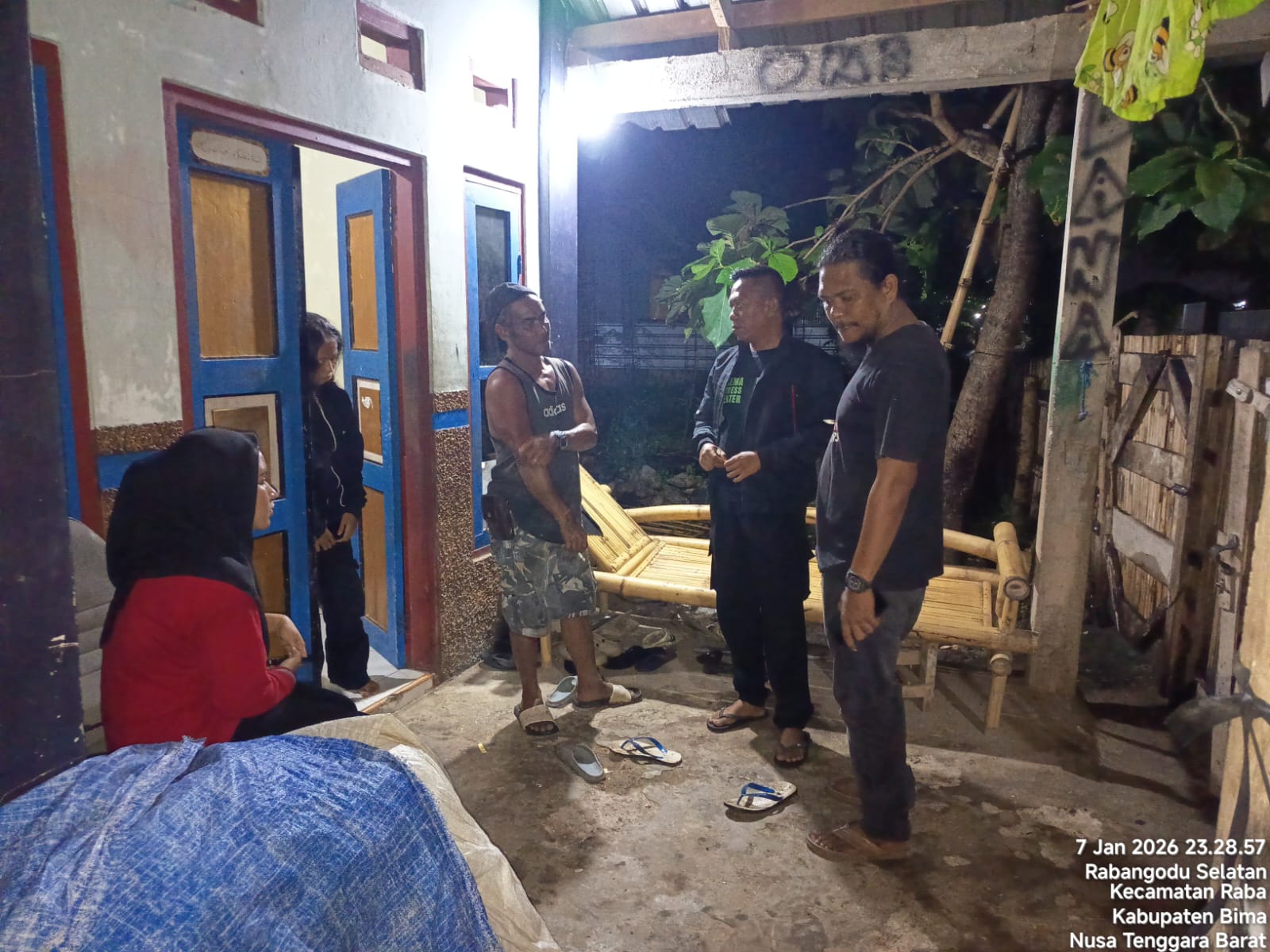 Kejadian tersebut dilaporkan terjadi sekitar pukul 20.30 WITA di emperan rumah milik saudara Salahudin, Kelurahan Rabangodu Selatan. Personel Polsek Rastim bersama piket Polsubsektor Raba tiba di lokasi sekitar pukul 21.40 WITA guna melakukan penanganan awal dan pengamanan TKP.