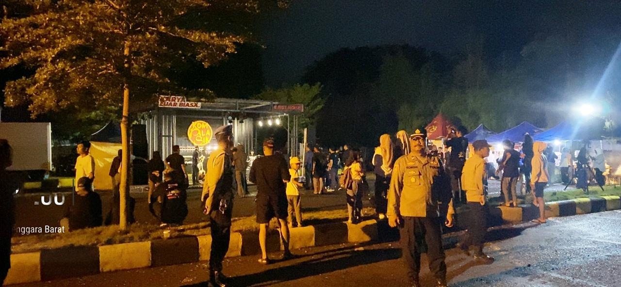 Sumbawa Besar, NTB — Jajaran Kepolisian Sektor Sumbawa memberikan pengamanan maksimal pada kegiatan masyarakat bertajuk Event Kompilasik “Pop Up & Gigs”, sebuah konser musik band lokal yang digelar di area parkir Bandara Sultan Muhammad Kaharuddin Sumbawa, Minggu malam (11/01/2026).