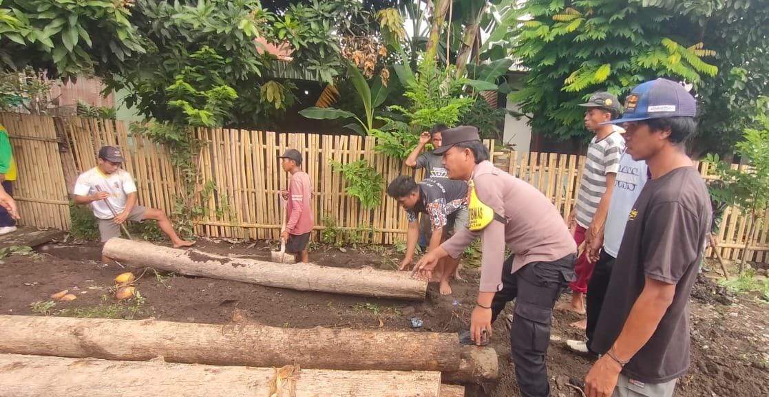 Bhabinkamtibmas Polsek Bolo Polres Bima Polda NTB bersama TNI Koramil 1608-2/Bolo dan warga menggelar Gotong royong membersihkan saluran air di Desa Nggembe Kecamatan Bolo Kabupaten Bima.