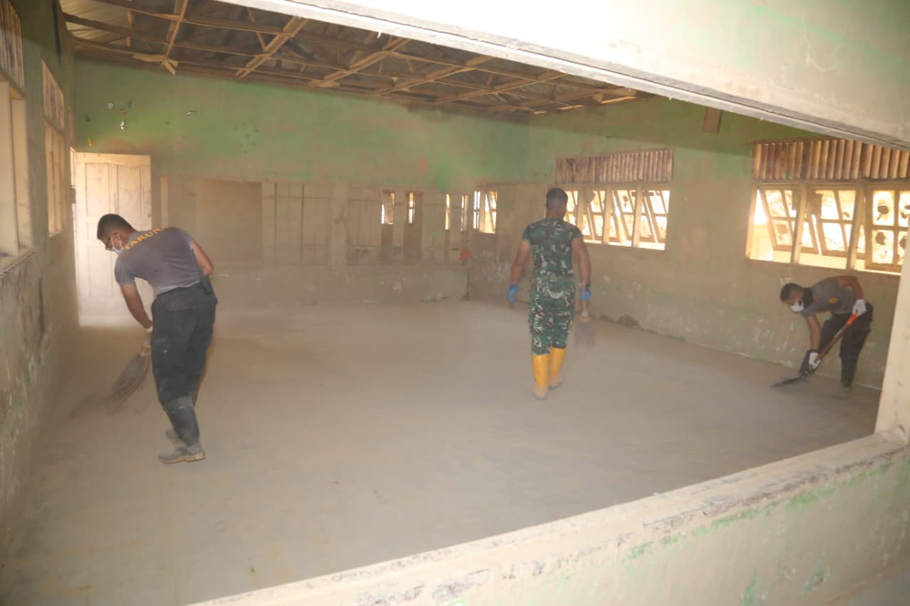 Taruna Akpol, Sultan Rekha Alfarabbi Firdaus, menjelaskan bahwa kondisi lumpur di dalam ruangan sekolah masih cukup tebal sehingga membutuhkan penanganan serius.