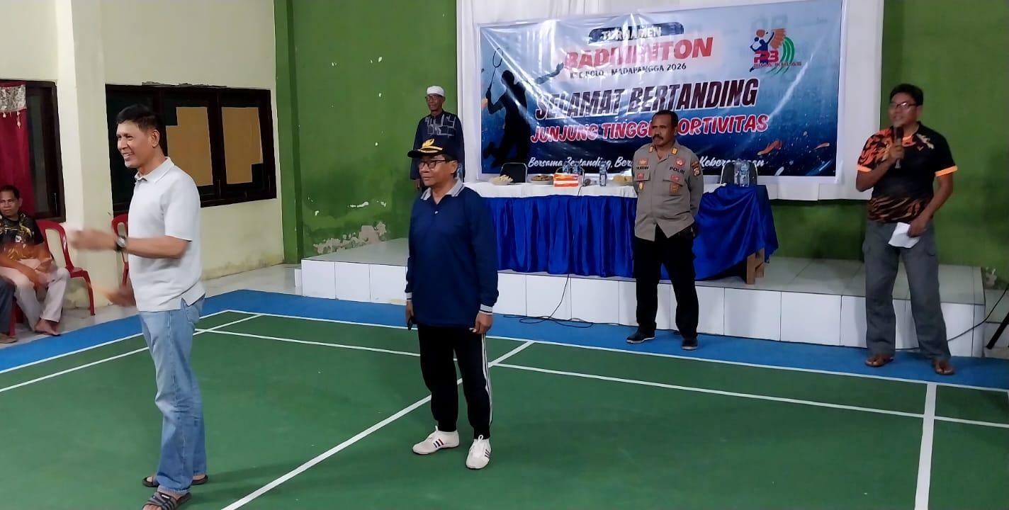 Kapolsek Bolo Polres Bima Polda NTB AKP Nurdin menghadiri kegiatan pembukaan turnamen badminton tingkat Kecamatan Bolo dan Kecamatan Madapangga Sabtu malam (31/01/26) di lapangan Bulutangkis Camat Bolo.