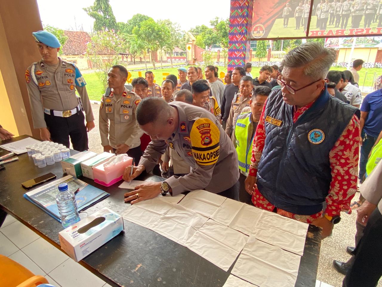 Tanpa pemberitahuan sebelumnya, seluruh personel yang berada di Mako Polres Bima Kota dikumpulkan dan diarahkan langsung oleh Wakapolres Bima Kota, Kompol Herman, untuk mengikuti pemeriksaan urine guna memastikan tidak adanya keterlibatan dalam penyalahgunaan narkotika.