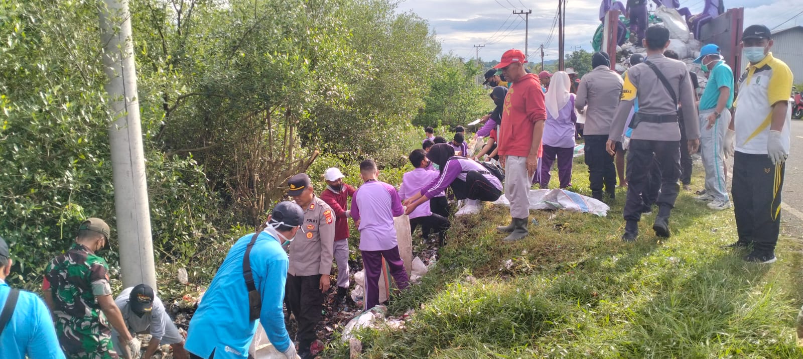 “Pagi ini kami bersama Camat, TNI, instansi terkait, dan adik-adik pelajar turun langsung membersihkan titik-titik yang dijadikan lokasi pembuangan sampah ilegal oleh oknum masyarakat. Sasaran utama kita adalah sepanjang pinggir jalan negara yang selama ini merusak pemandangan dan kesehatan,” ujar AKP Sugianto di lokasi kegiatan.