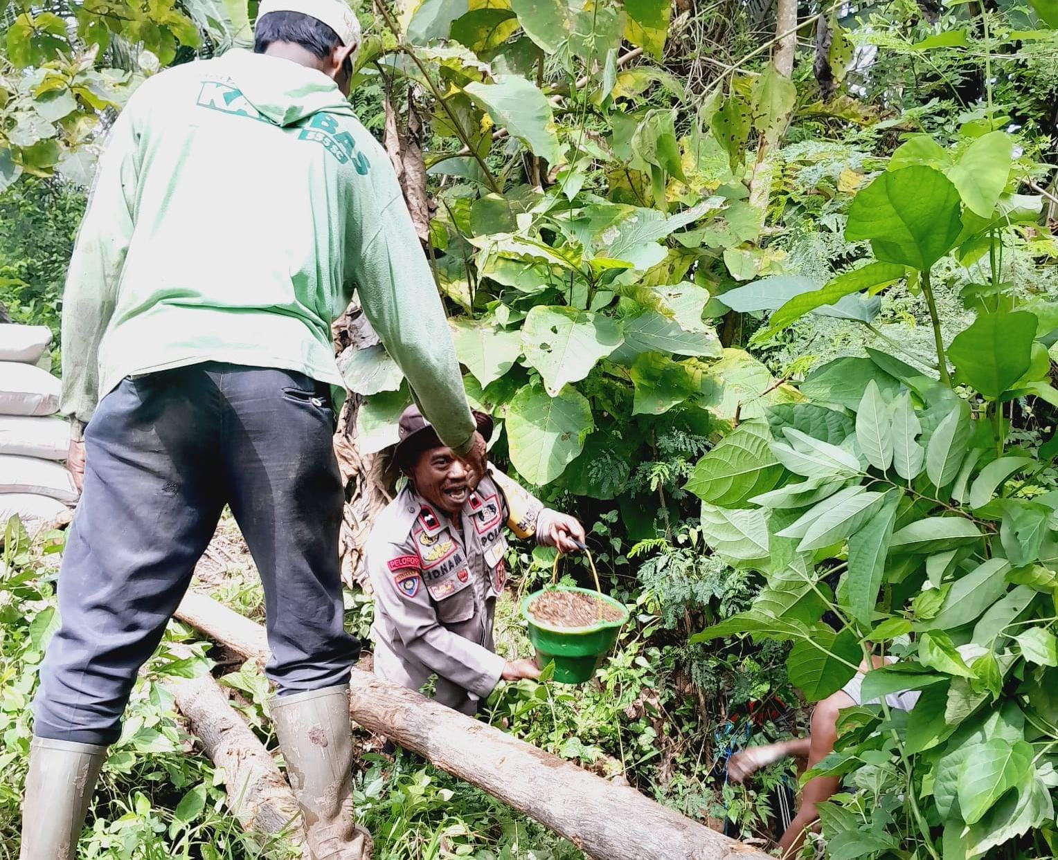 Tidak saja ikut membantu Aipda Idham juga menyisihkan sebagian rezeki untuk membeli semen guna mempercepat pembangunan jembatan.