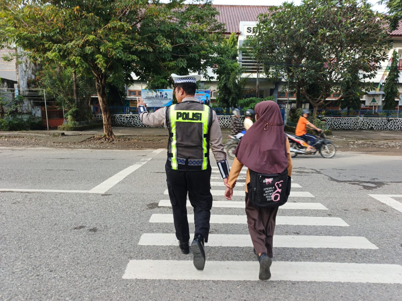 “Selain melakukan pengaturan arus lalu lintas, anggota juga membantu menyeberangkan pejalan kaki, anak-anak sekolah dan pengguna jalan lainnya guna memberikan rasa aman dan nyaman saat beraktivitas,” jelasnya.
