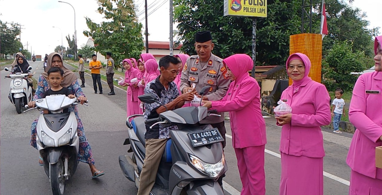 Persiapan dimulai sejak pukul 16.30 WITA di Mako Polsek Lape. Tepat pukul 17.00 WITA, personel kepolisian dan ibu-ibu Bhayangkari turun ke jalan untuk membagikan sedikitnya 200 paket takjil kepada masyarakat.